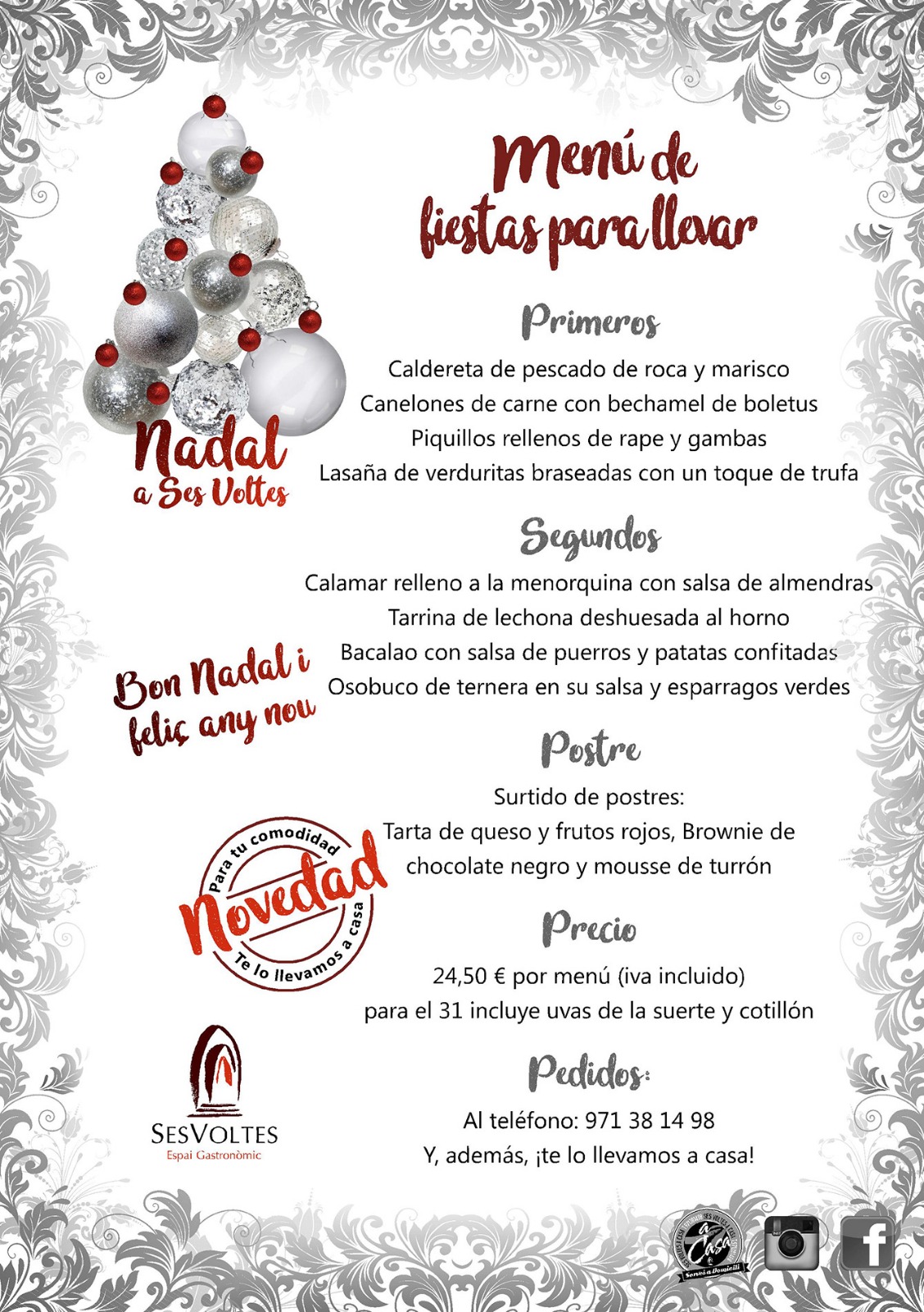 Estas Navidades del 2018, Ses Voltes llega con una NOVEDAD muy importante, te llevamos el Menú de estas fiestas a tu casa!